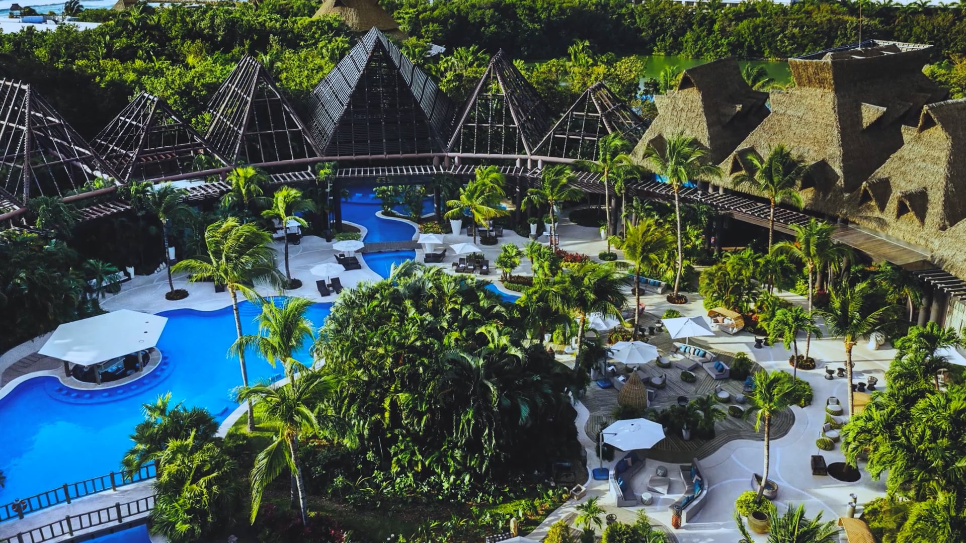 - Relax in sprawling resort swimming pools and daybeds surrounded by tropics